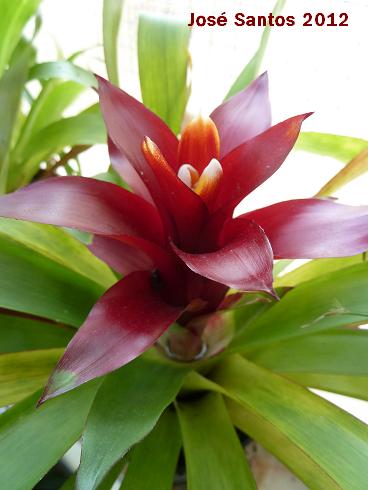 Quando andamos à procura de cor no jardim é agradável descobrir um foco de vermelho escuro num canto mais escondido do jardim. Uma bonita bromélia, provavelmente uma Guzmania híbrida. Divisões do ano passado.