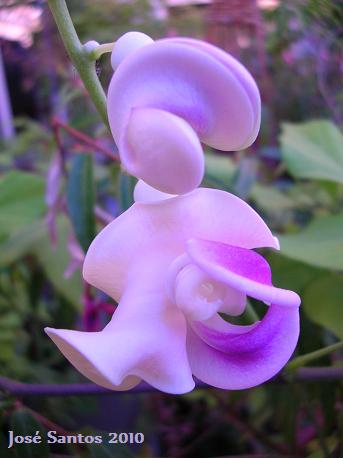 Entretanto coloquei num vaso e dei algumas a amigos. No Inverno desapareceu tudo e pensei que tinham morrido. Um primo meu ofereceu-me esta Primavera uma planta já germinada e com uns 25cm de tamanho. Ao mesmo tempo as plantas das sementes voltaram a acordar. Assim, fiquei com duas plantas, em dois vasos. Estas são as primeiras flores. São muito bonitas, muito perfumadas e devem ter muito néctar porque as abelhas e as formigas não as largam. Estou neste momento a montar uma nova pérgula que vai ser para as Vigna caracalla e para a Glicínia. As Caracoleiras são originárias da América do Sul e o nome ‘caracalla’ significa que é originária de Caracas, na Venezuela. Vamos ver se terei sementes para distribuir pelos amigos aqui do fórum…