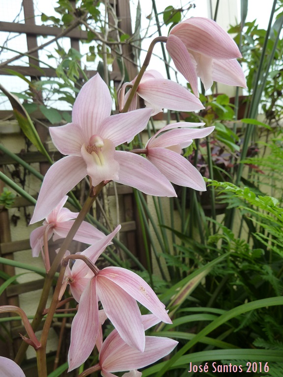 Cultivado todo o ano no exterior em vaso de barro alto com casca de pinheiro e substrato para orquídeas.