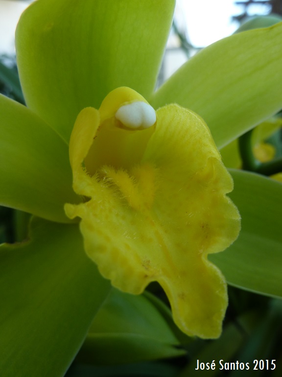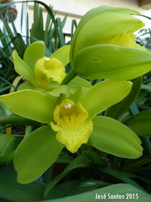 Um bonito Cymbidium de flores grandes e de cores fortes e brilhantes. Um magnífico verde e um amarelo fantástico numa bonita combinação.