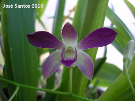 A Dendrobium hybride in my temperate greenhouse who shows a lovelly spike right now. THe flowers are all differente with its white and purple curly petals ans sepals. They are very easy to cultivate in a small plastic pot. I water it twice a week or more if it is really hot. The fertilisation is done every two weeks.