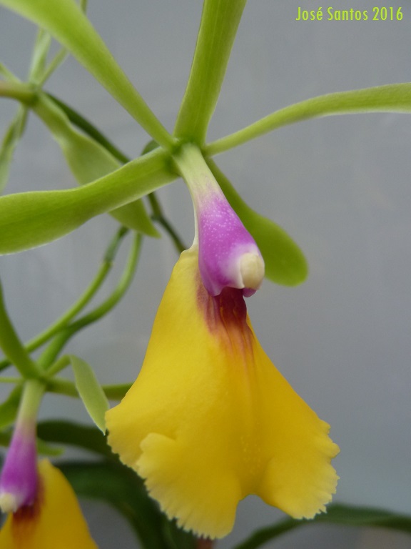 Um híbrido resultante do cruzamento do Epidendrum pseudoepidendrum com a Cattleya Claesiana que cultivo na minha estufa quente.