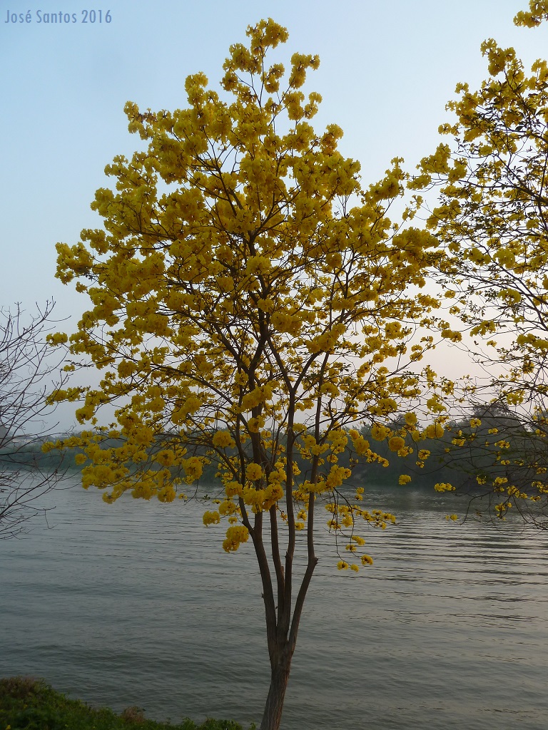 E mesmo junto ao rio, esta maravilha brilhava. Seriam folhas amarelas? Não, eram flores, lindas! Handroanthus albus