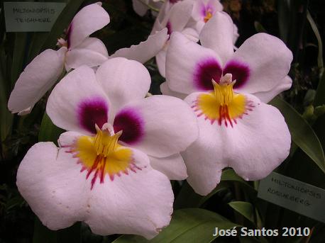 Aqui ficam algumas Miltoniopsis, as chamadas Orquídea ‘Amor-perfeito’ que fotografei na exposição de Londres. Confesso que nunca tive uma destas na minha colecção, assustado pelo que me diziam sobre a dificuldade em as manter e também por não lhes achar muita graça.