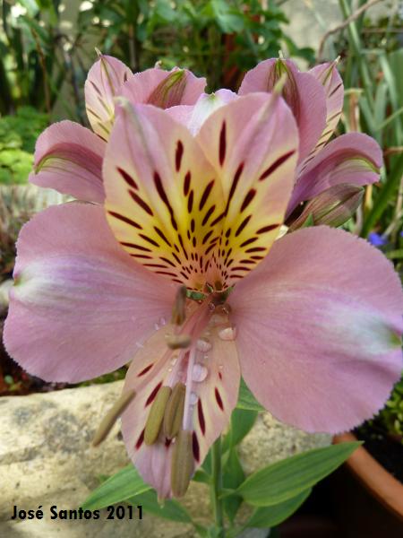 O ano passado comprei (acho que em Inglaterra) alguns tubérculos de Alstroemeria. Cresceram muito pouco e muito fraquitos. Ignorei e deixei-os ficar nos vasos. Esta Primavera começaram a rebentar com mais força. Já cresceram uns 25cm e um deles resolveu dar flor. Foi com espectativa que esperei pela abertura da flor para ver que cor tinha e se era diferente das três outras Alstroemerias que tinha floridas. E era. Um bonito rosa pastel. Não acham uma beleza?? ![]()
