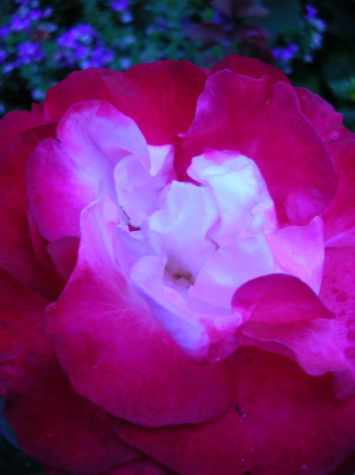Bought two of this Roses, one for me and one for my mother. The pictures you see here are from the first flower of my plant. My mother’s plant gave three very different roses, all uniform, without the diferent colours white / red. All light pink.