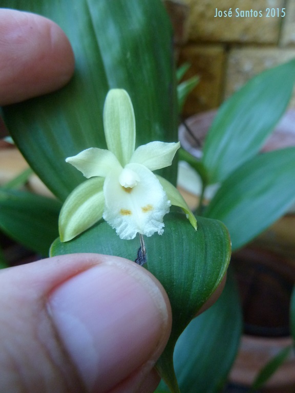 Ontem, deambulando pelo meu jardim, notei que a Sobralia bimaculata estava em flor. Duas pequeninas flores, em pseudobolbos distintos. É fantástico como uma planta, depois de ter vindo do Equador, em raíz nua e plantada dias depois, floresce tão prontamente. Acredito que tenham sido todas as mudanças de ambiente que despertaram as flores, combinando com as condições do nosso Outono serem talvez parecidas com a Primavera que está agora a decorrer no Equador.