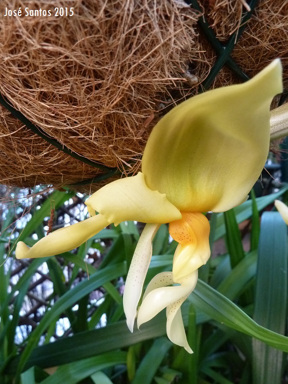 Mais uma espécie de Stanhopea que floriu cá em casa pela primeira vez. Tinha duas hastes florais mais uma apodreceu porque ficou demasiado molhada. As flores são de tamanho médio (cerca de 10cm) e têm uma cor amarelo-esverdeada. Duram 4-5 dias abertas e são agradavelmente perfumadas.