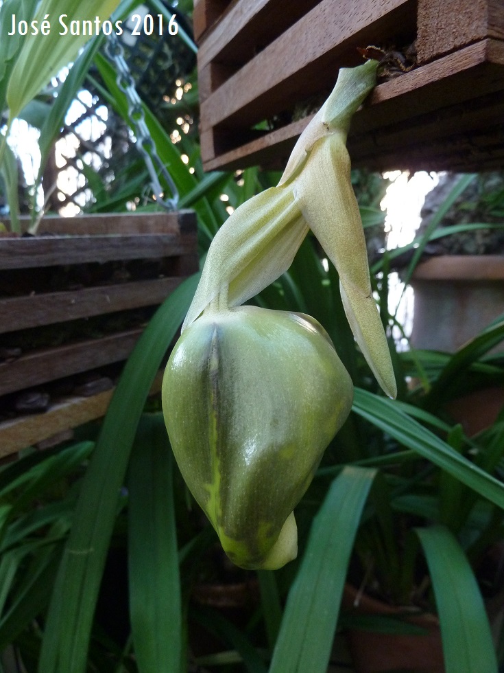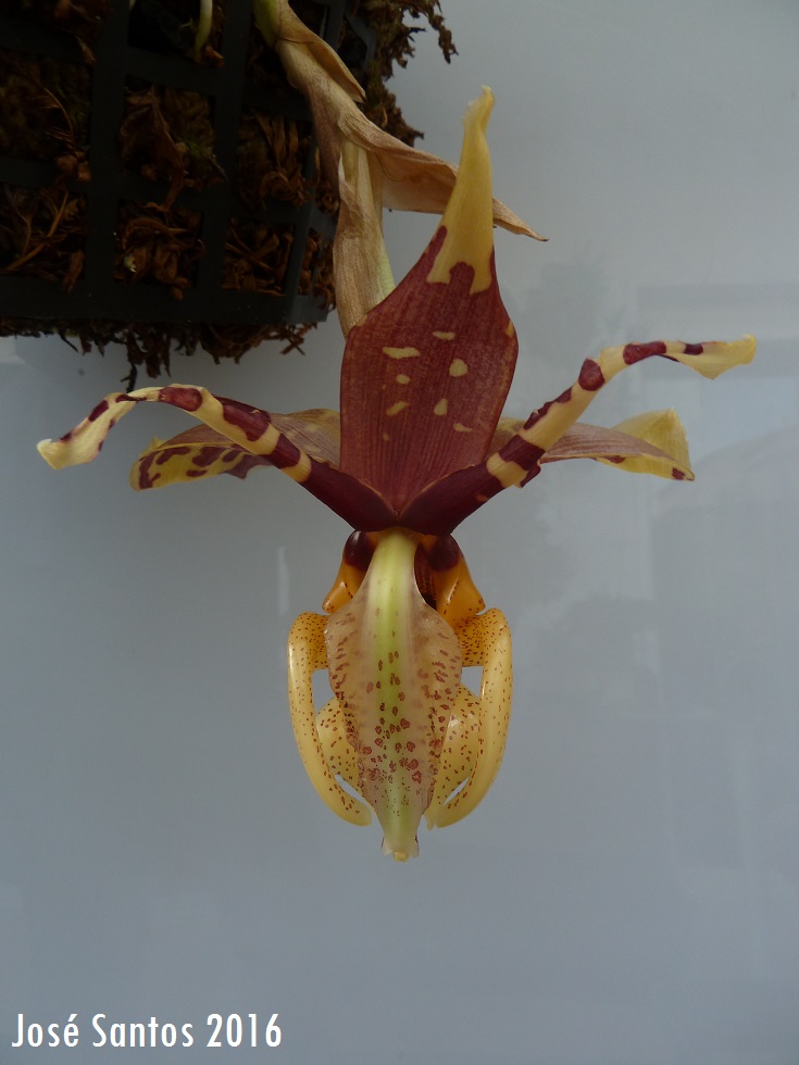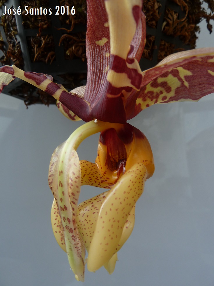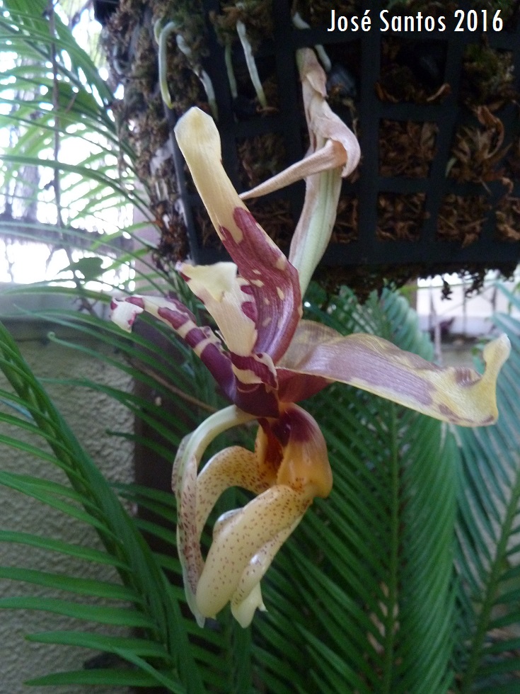 Este ano dividi a minha planta enorme de Stanhopea tigrina var. nigroviolacea. A que está na foto da contracapa do meu livro. Já estava demasiado grande, com muitos pseudobolbos sem folhas e a precisar de ser revigorada. Já tinha crescido tanto que já tinha partido o cesto.