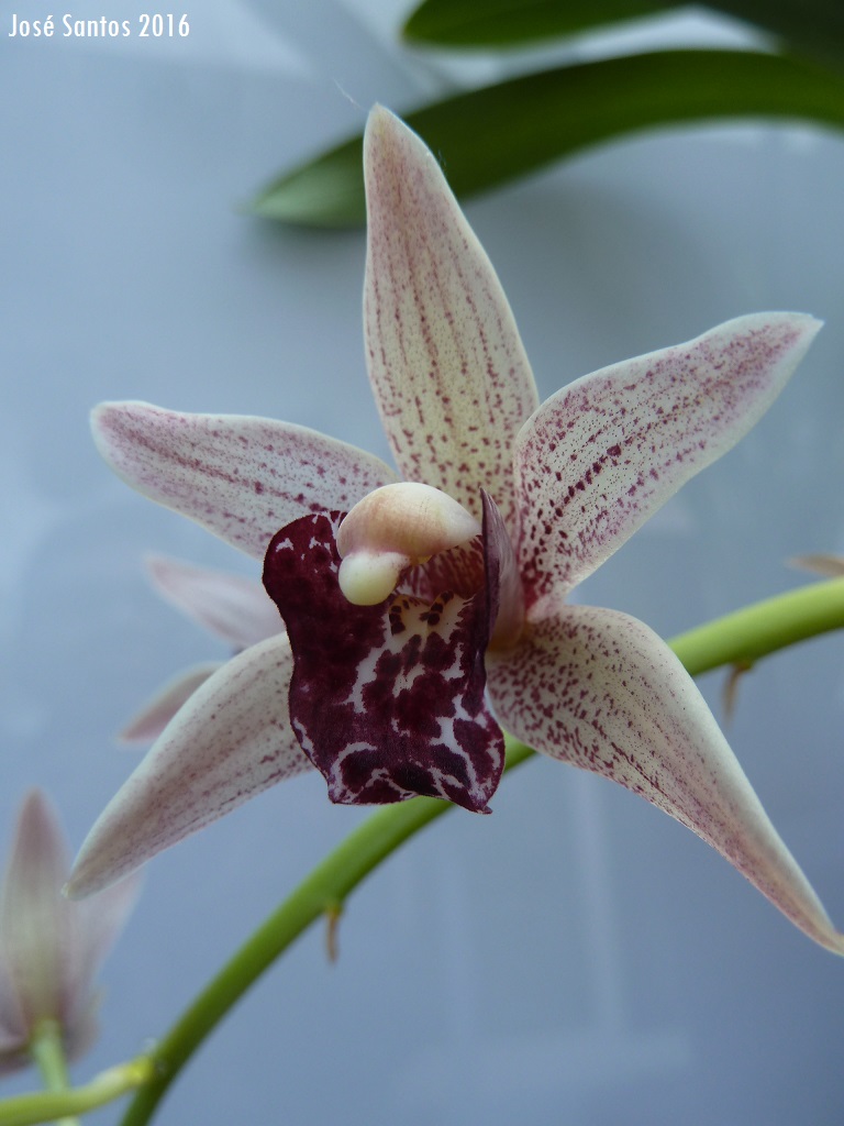 Uma nova aquisição, o Cymbidium Devon Parish ‘Ern’s Choice’. Um híbrido de flor pequena familiar do Cymbidium devonianum.