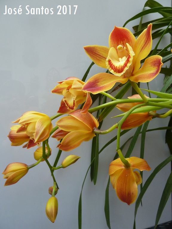 Quatro bonitas hastes, com grandes cachos de pequenas flores. Esta foi a melhor floração deste Cymbidium Mary Green ‘Spring Wind’.