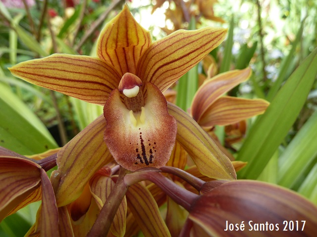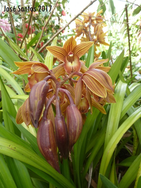 Sempre bonito, o Cymbidium Eastern Beauty ‘Kagaribi’, voltou a florir. Este ano tem várias hastes mas que ficaram um pouco danificadas com o mau tempo.