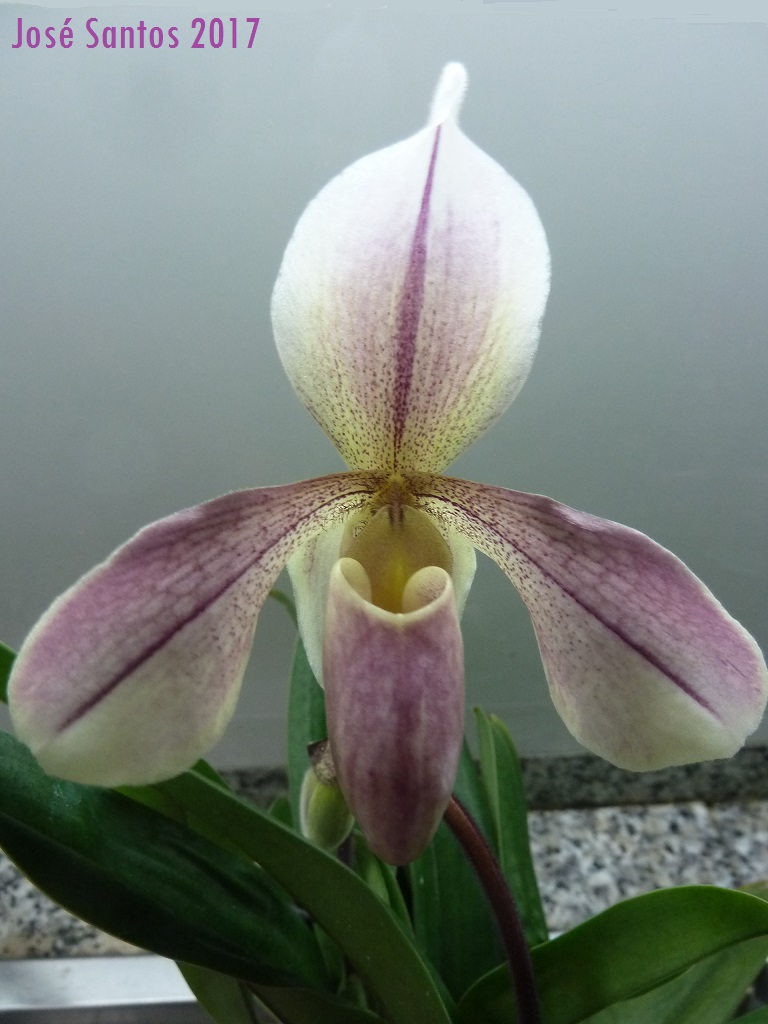 Uma nova aquisição cá em casa. É um bonito híbrido resultante do cruzamento dos Paphiopedilum Atlantis com o Paphiopedilum delenatii.